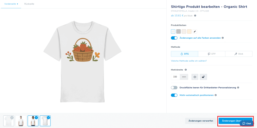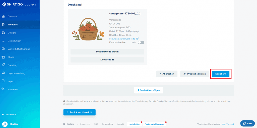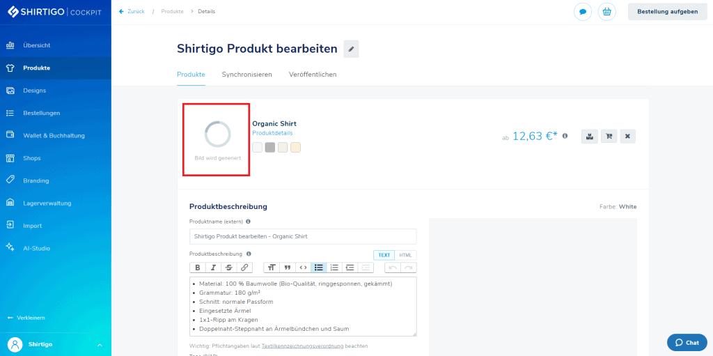 Schritt 5: Du wirst anschließend zurück in die Produktkollektion geführt. Das System erstellt nun automatisch neue Mockups basierend auf den vorgenommenen Anpassungen.
