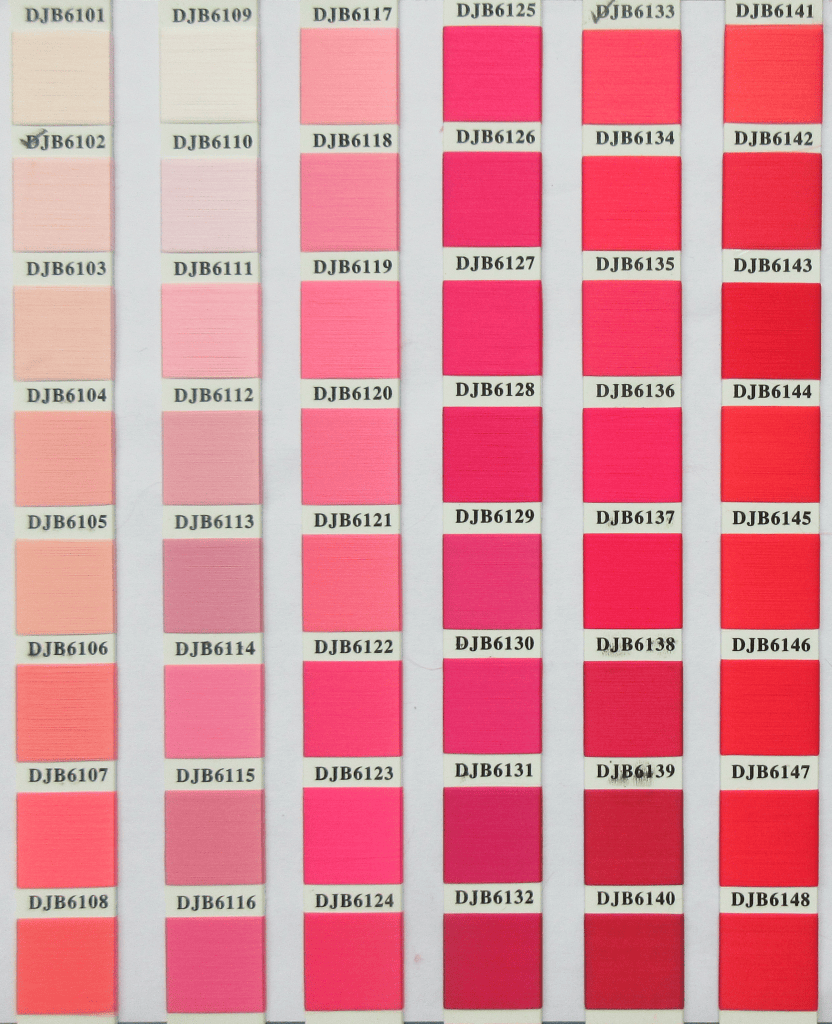 Die Anzahl der Farben hat kaum Einfluss auf den Preis, da das Etikett vollflächig gewebt wird (s. Garn-Farbkarte weiter unten). Prinzipiell ist auch die Herstellung kleinerer Mengen möglich, wobei die Kosten nicht vom Mindestbestellmengenpreis abweichen.