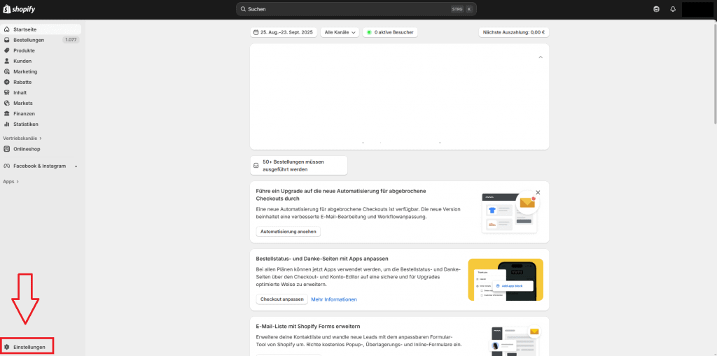 Logge dich in deinen Shopify-Account ein.